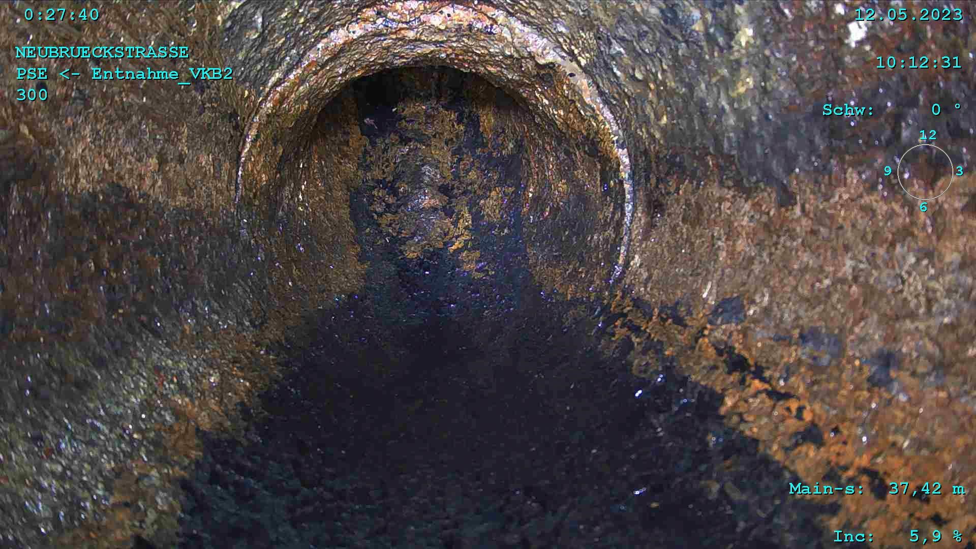 Um eine erfolgreiche Inspektion durchzuführen, wurde die Leitung vorgängig mit Hochdruck gespült und Schlammrückstände entfernt.